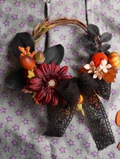 今回のリースは首にかけられるようにアーティフィシャルフラワーでお作りしています!