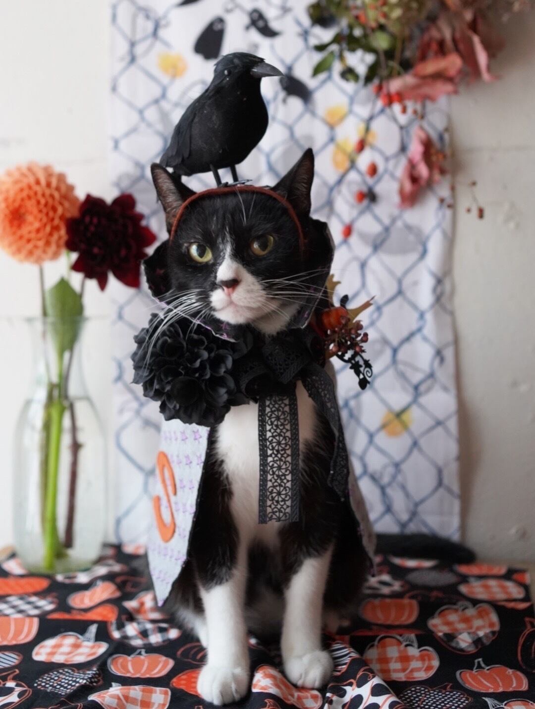 2*黒蝶ダリアと黒猫【スカとおそろい♪ハロウィンリース】