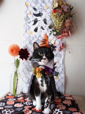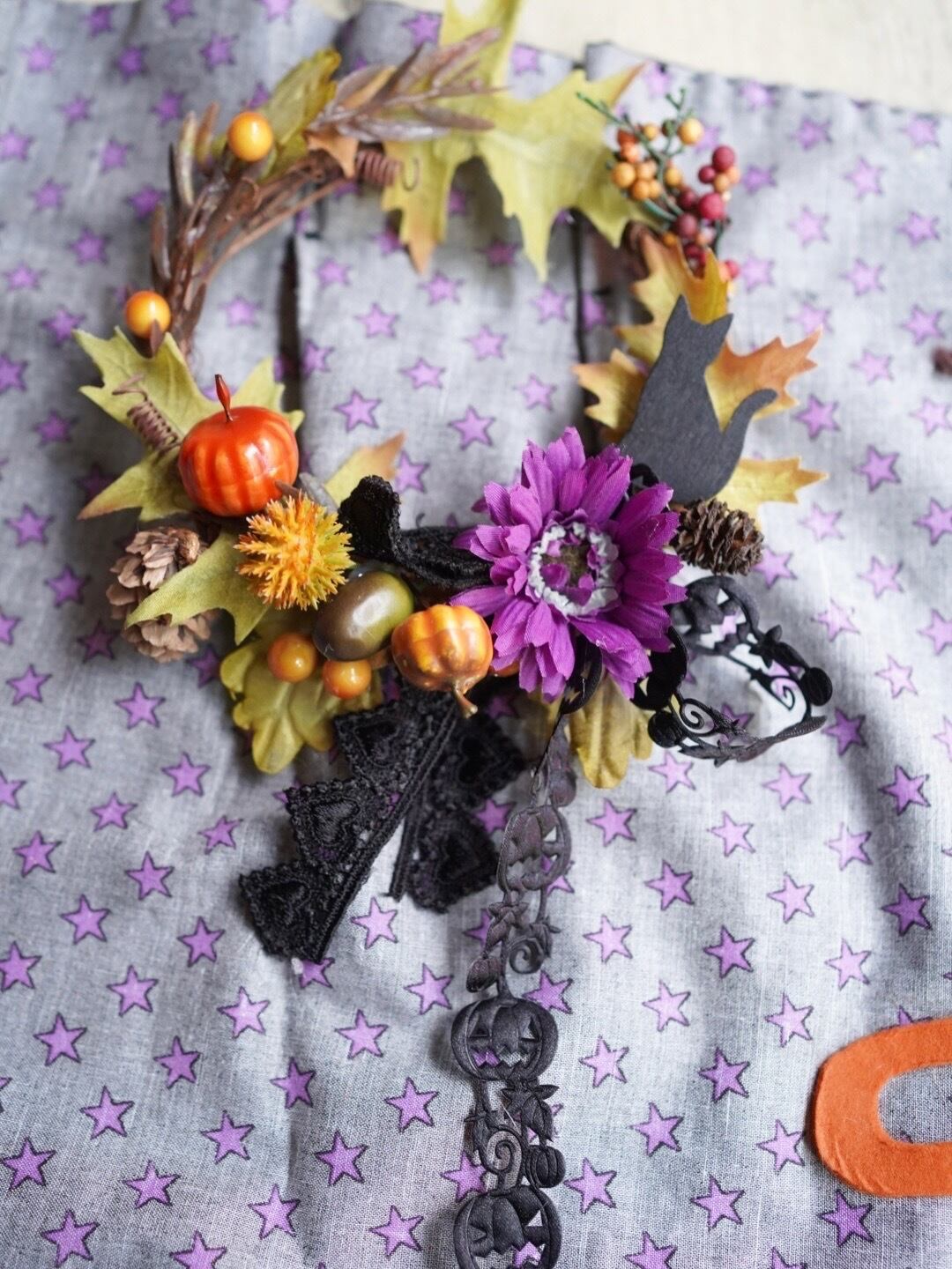 1*ハロウィン紫のガーベラと黒猫【スカとおそろい♪ハロウィンリース】