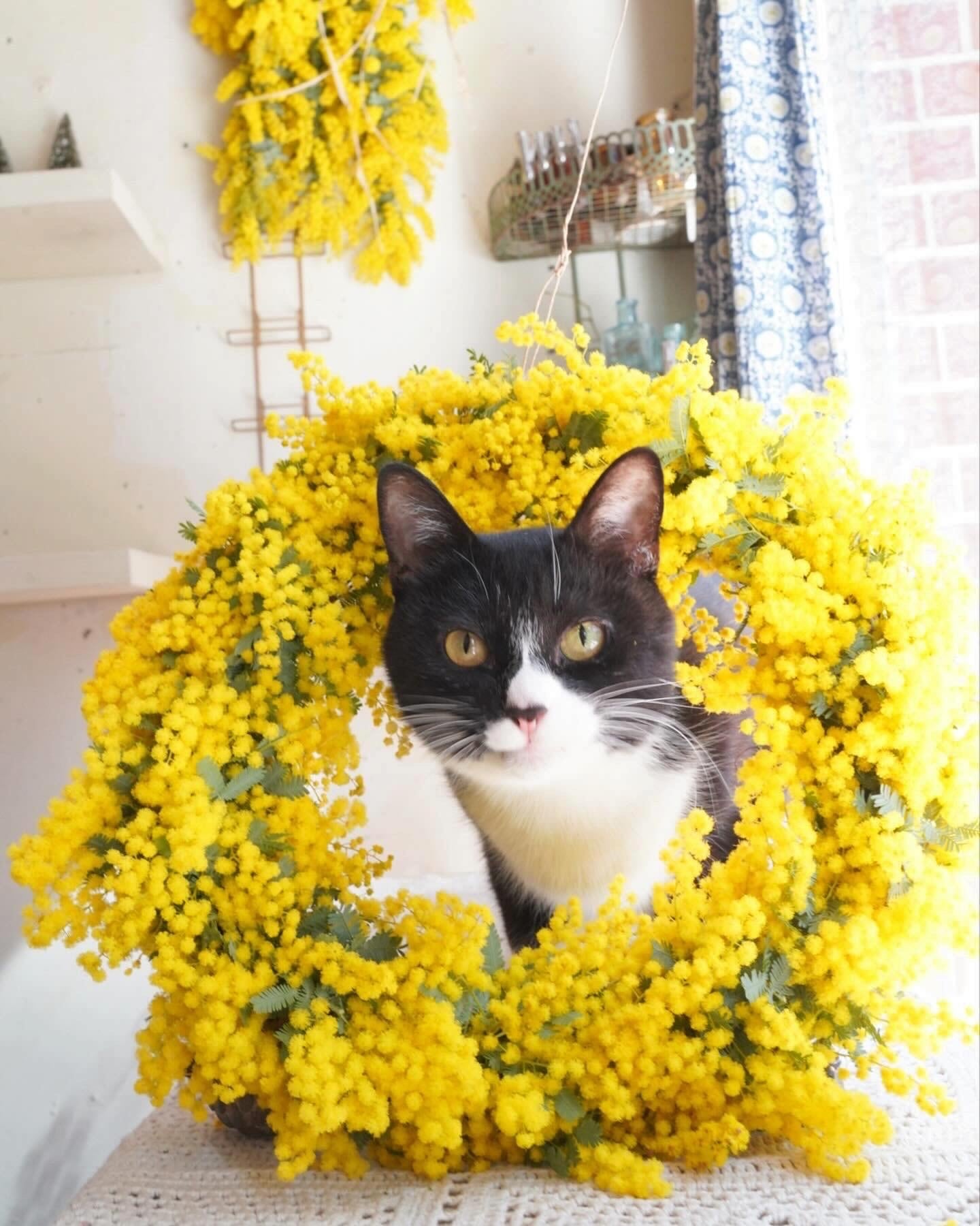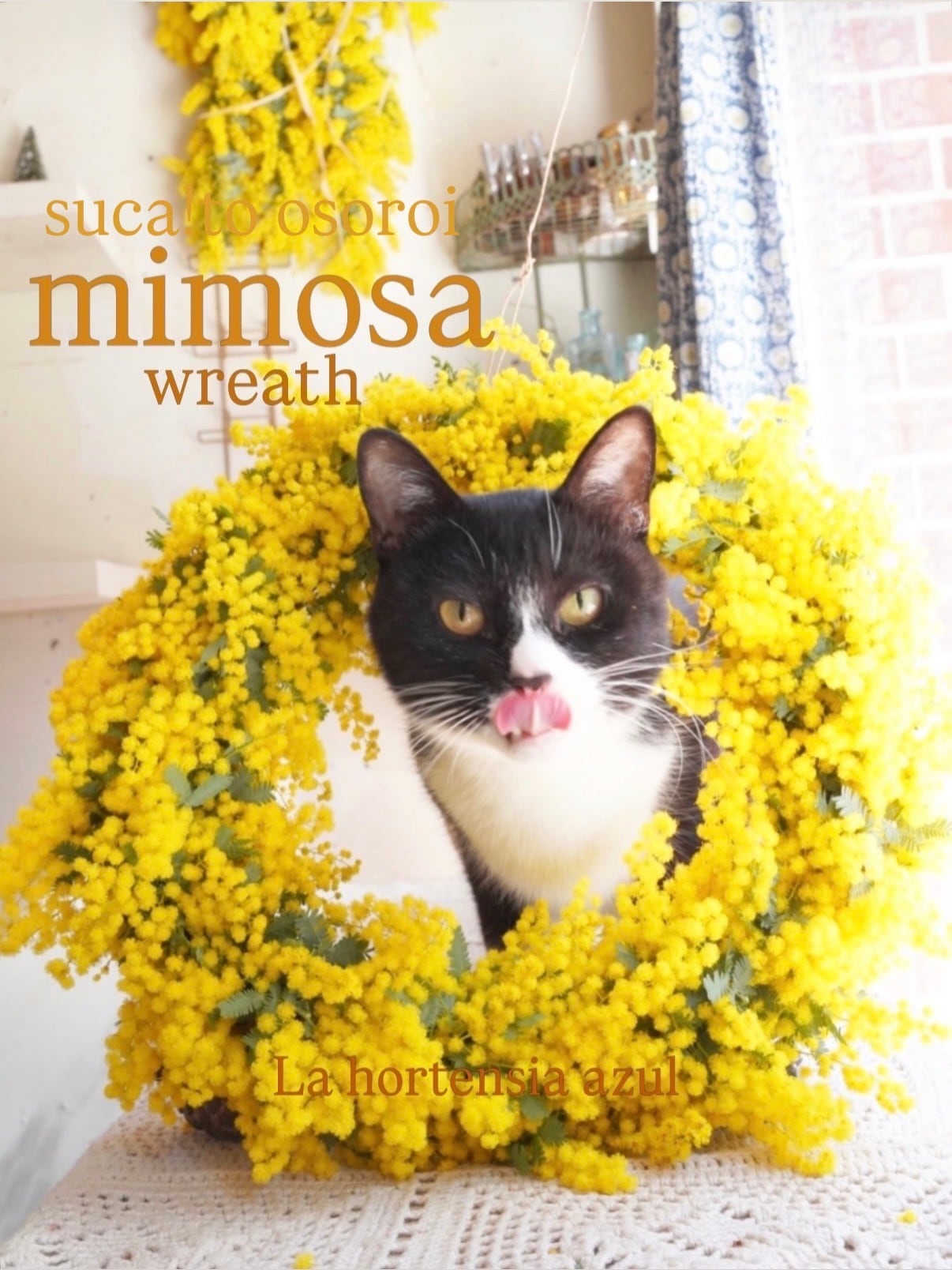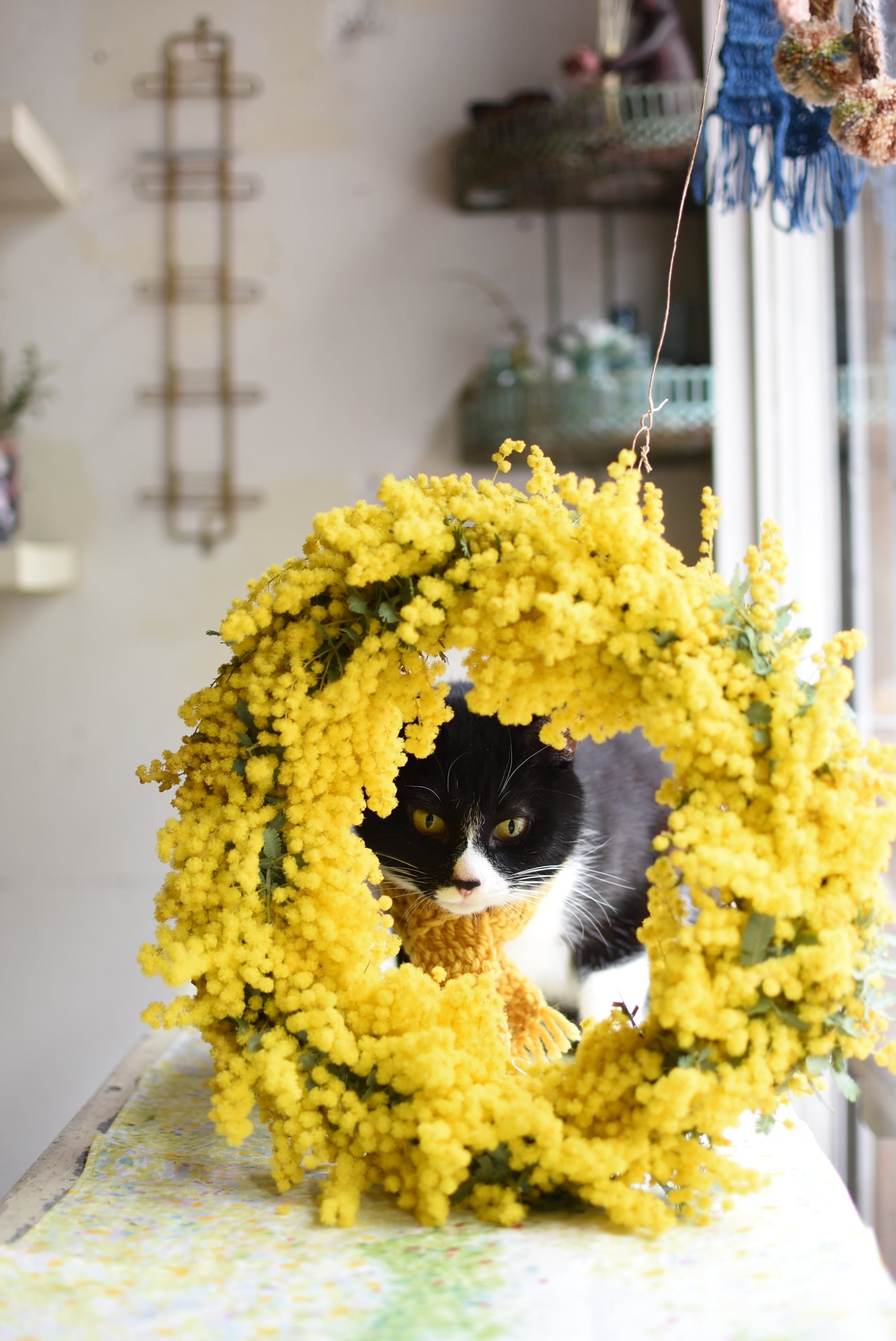 ミモザの日picにピ〜ッタリな、う〜んとフォトジェニックなボクとおそろいのおっきなリースだよ〜♪