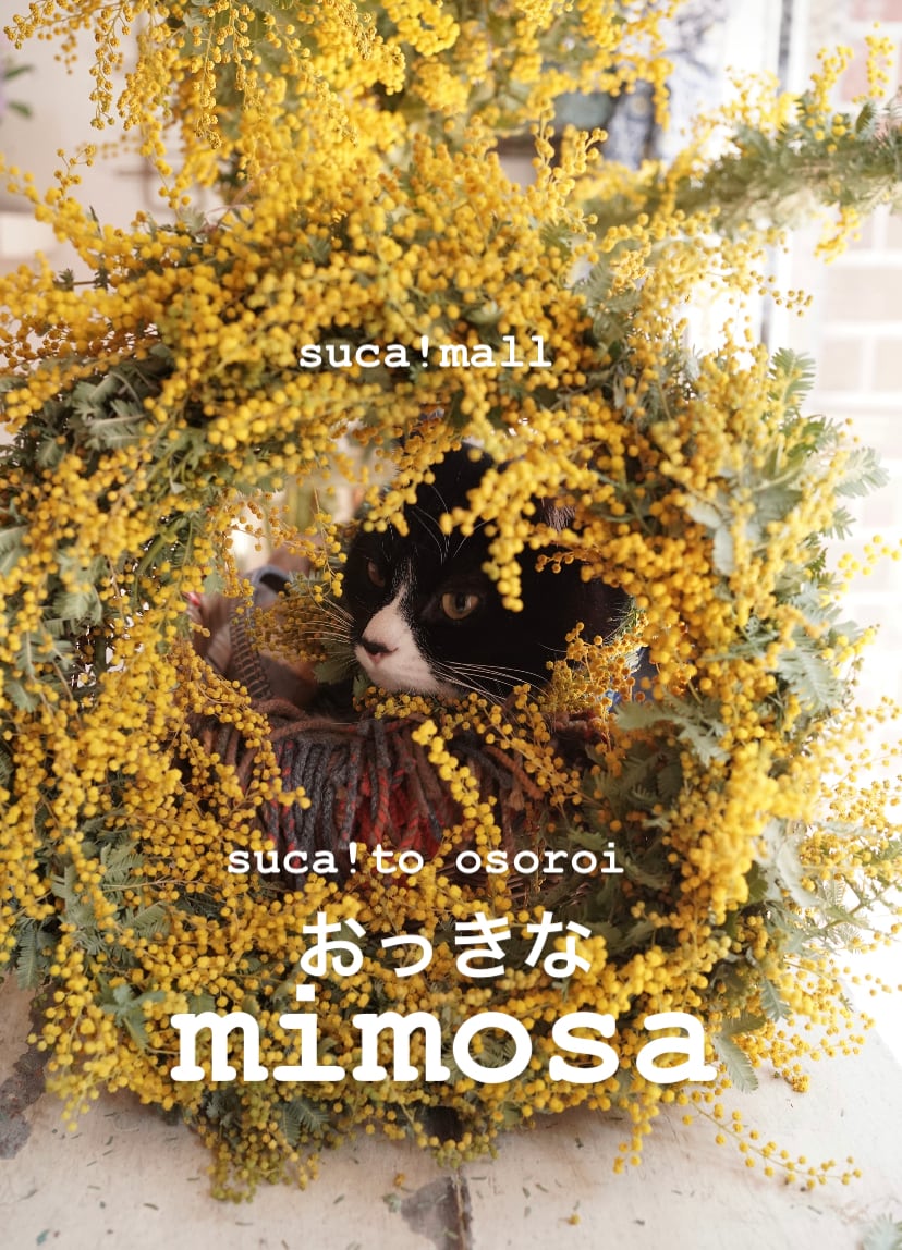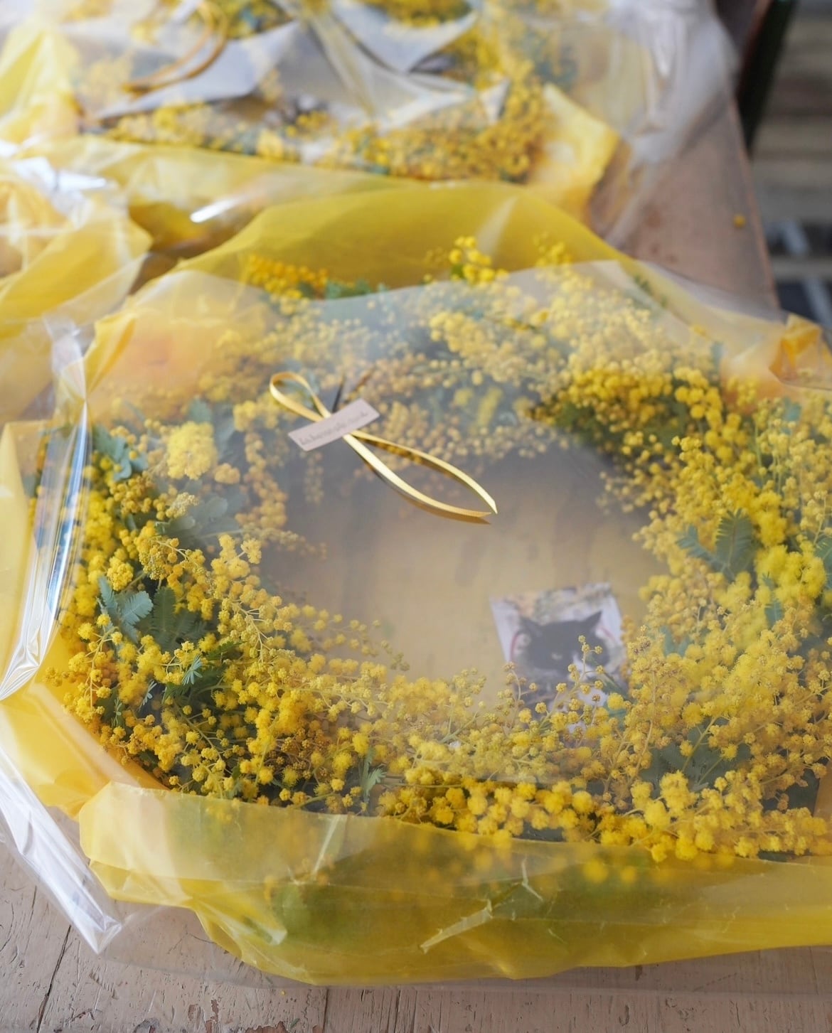 自然素材なのでミモザが取れちゃったりするよ。ゴソゴソガサガサは苦手だから、どうぞそろっとお取り扱いしてください。