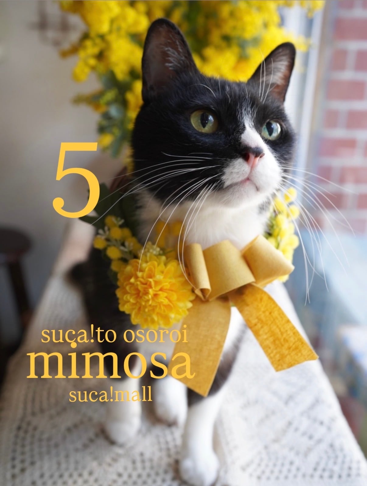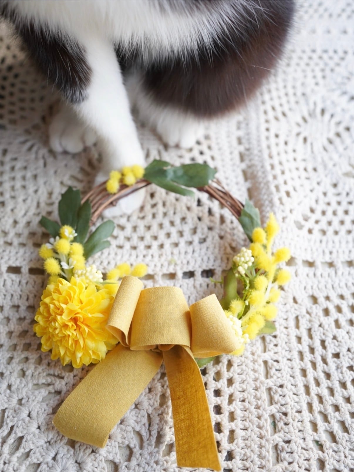 う〜んとフォトジェニックな"ミモザ"のボクとおそろいのリースだよ〜♪