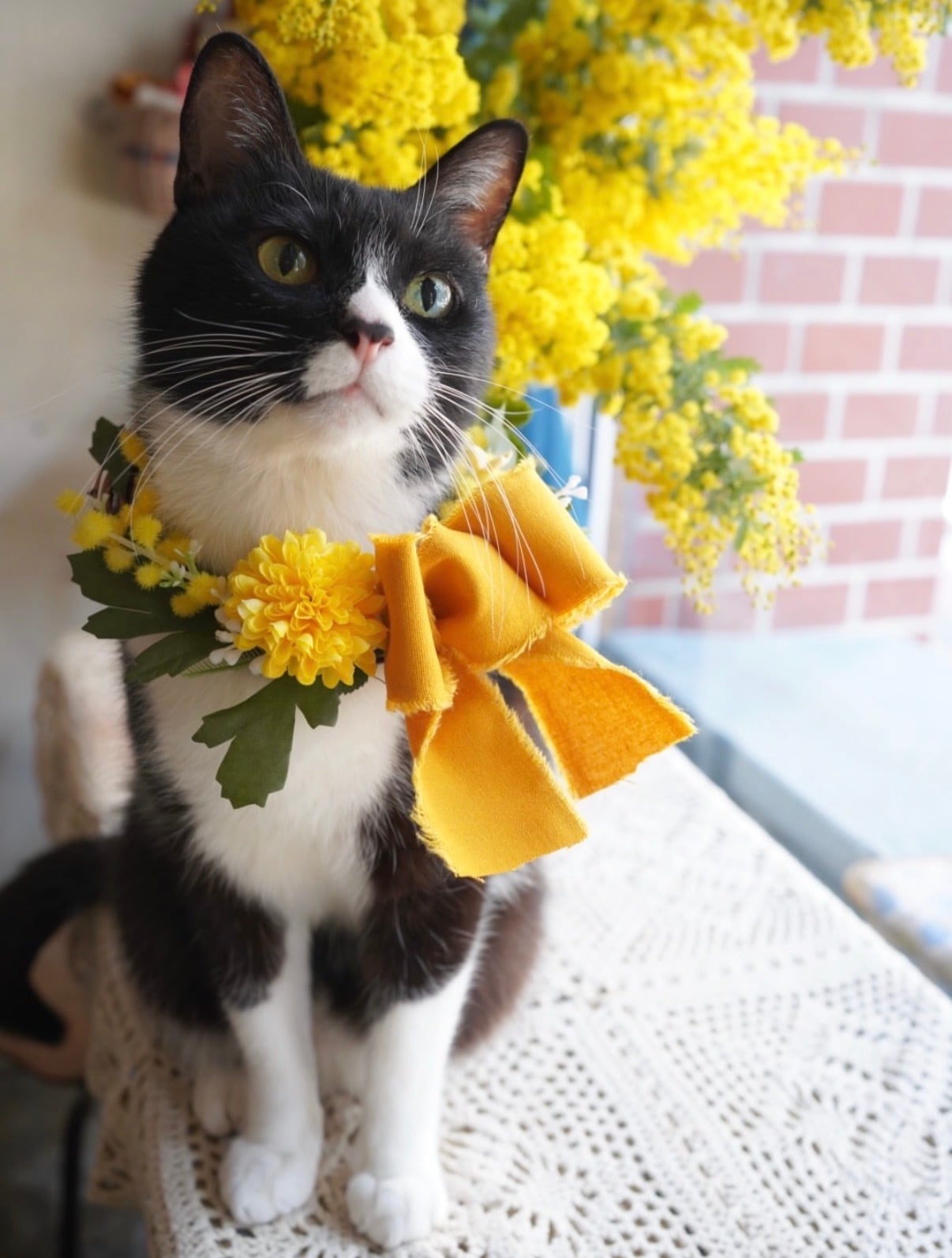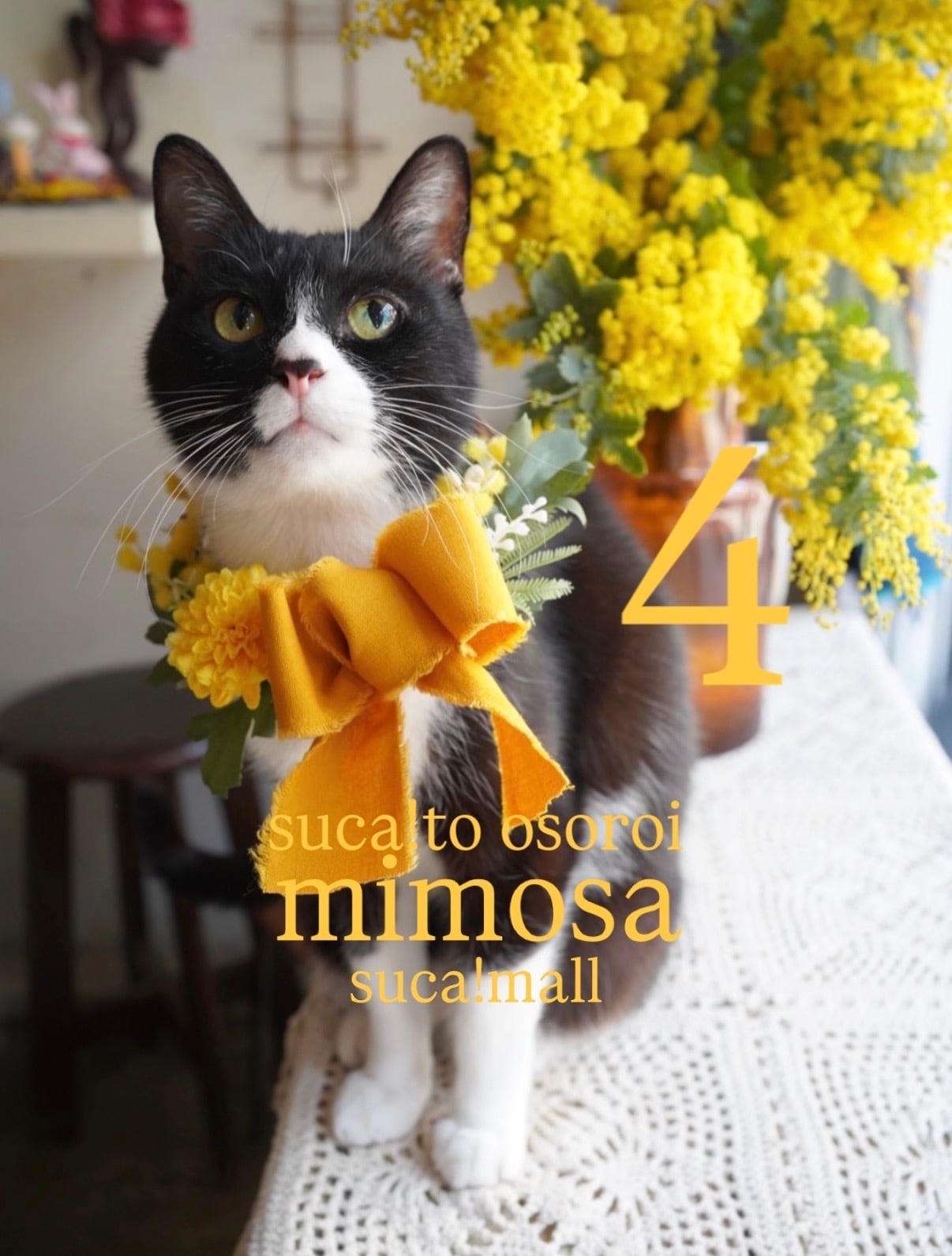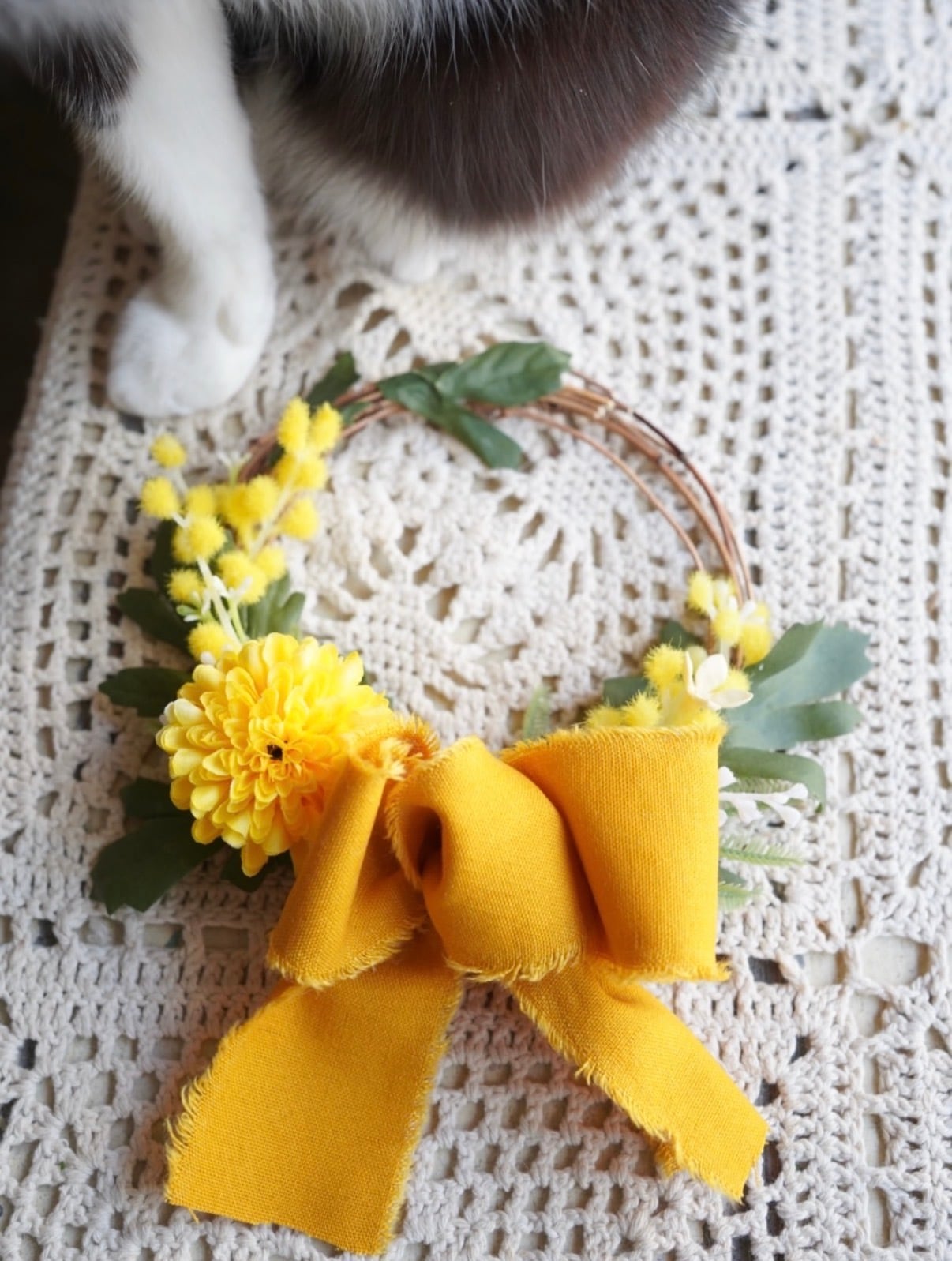 う〜んとフォトジェニックな"ミモザ"のボクとおそろいのリースだよ〜♪