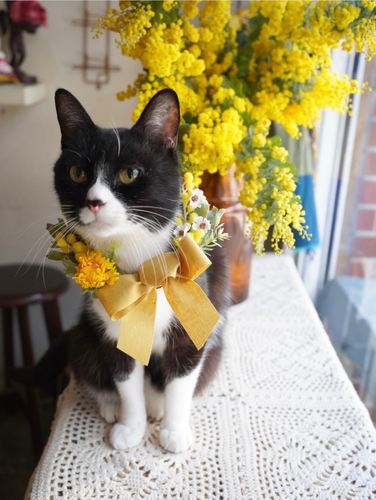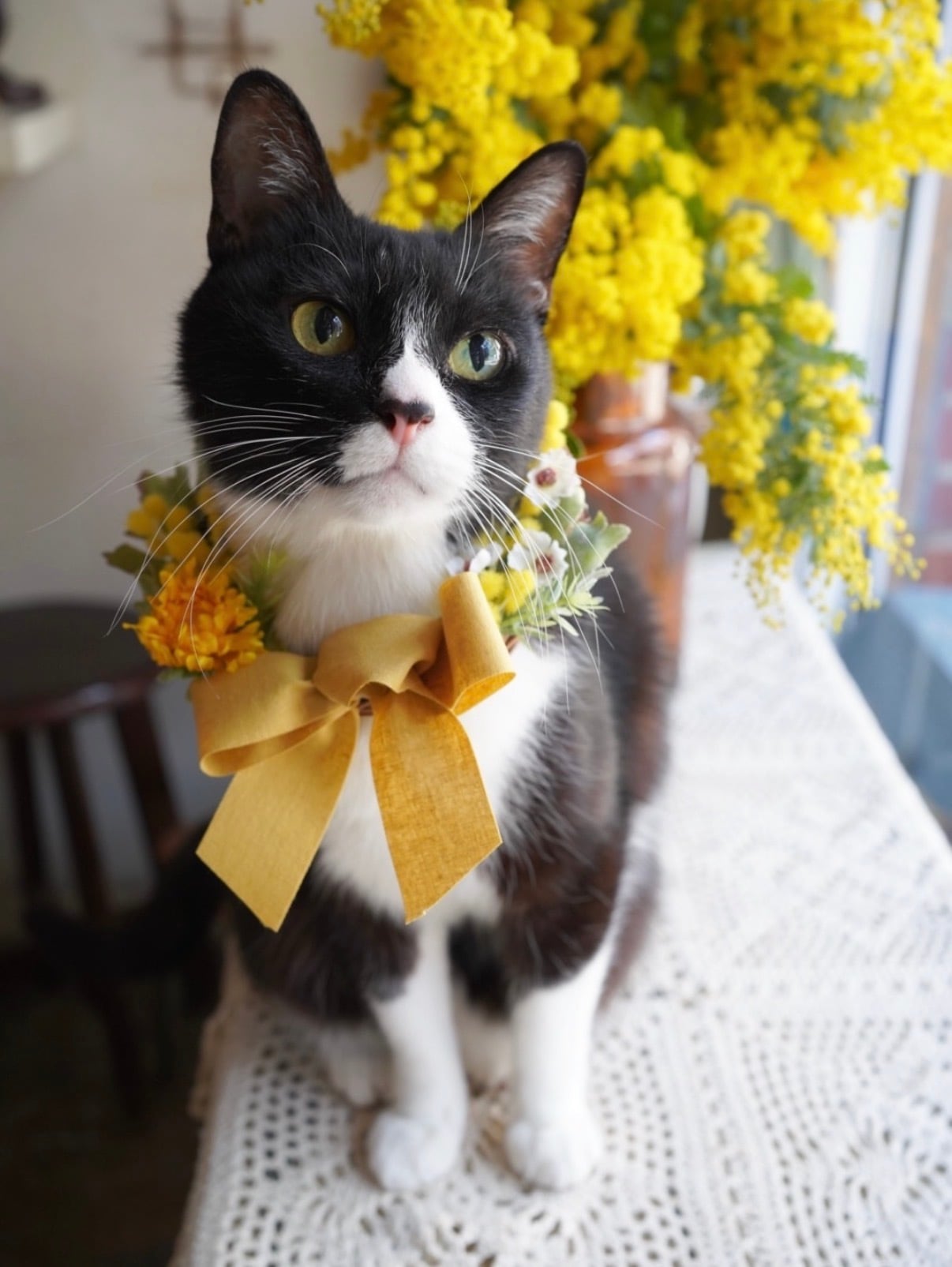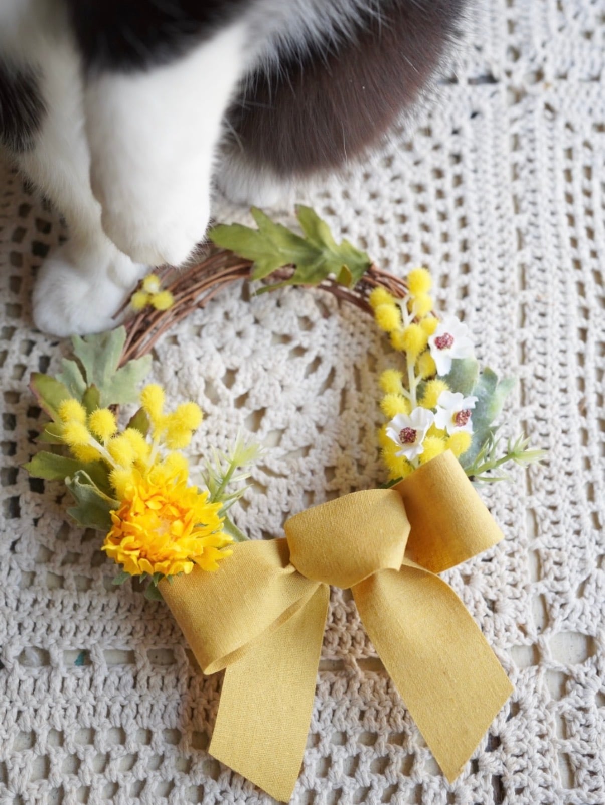 う〜んとフォトジェニックな"ミモザ"のボクとおそろいのリースだよ〜♪