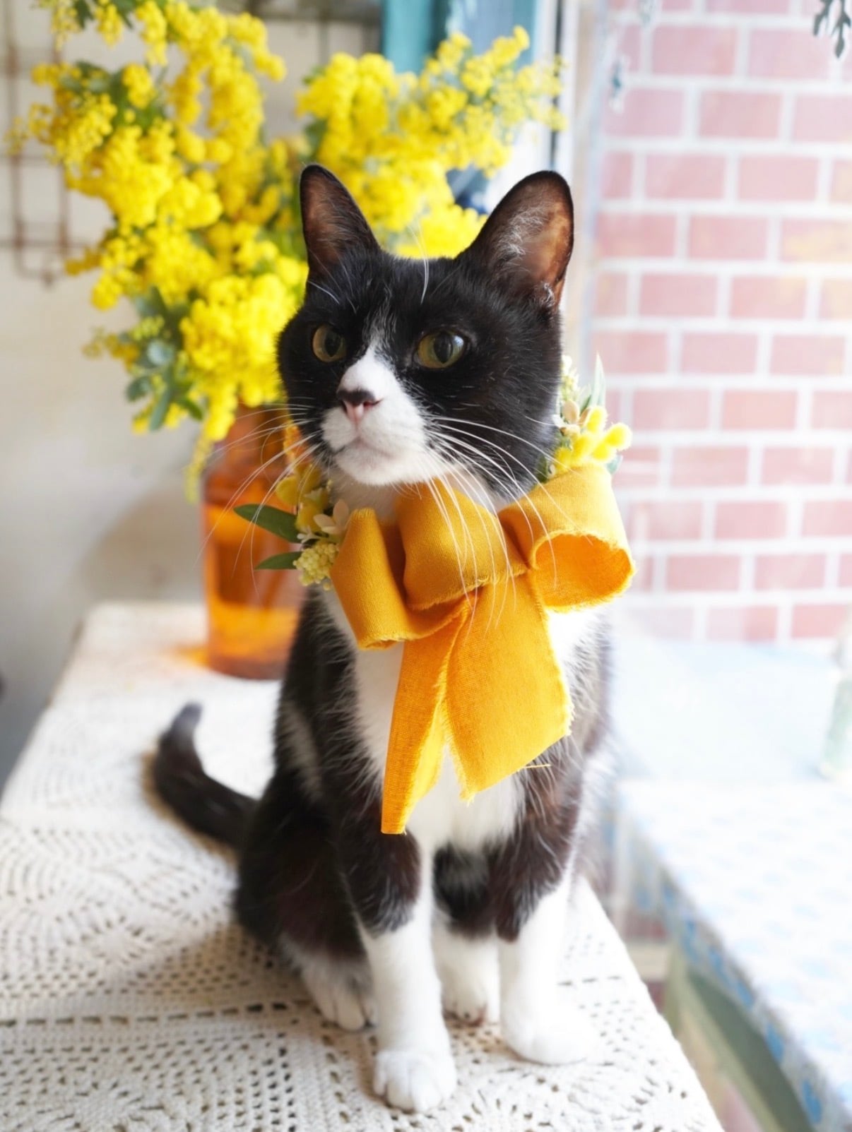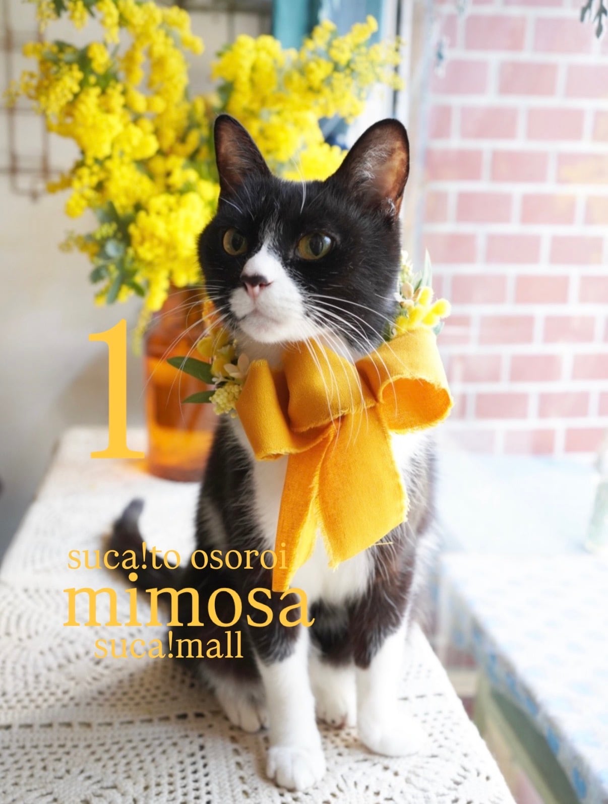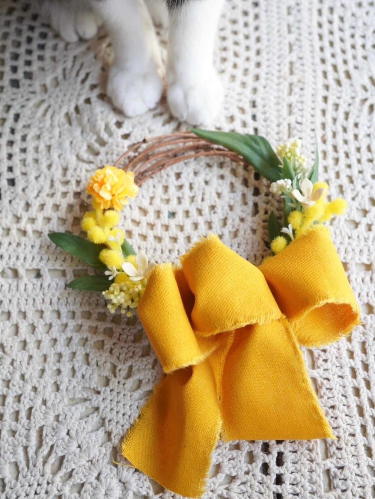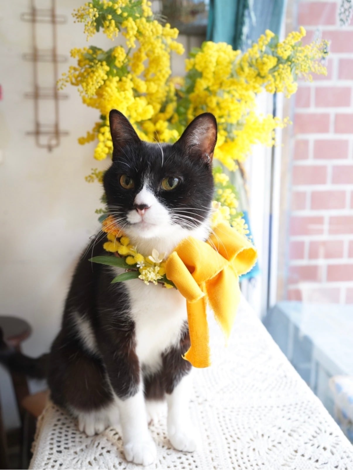 う〜んとフォトジェニックな"ミモザ"のボクとおそろいのリースだよ〜♪